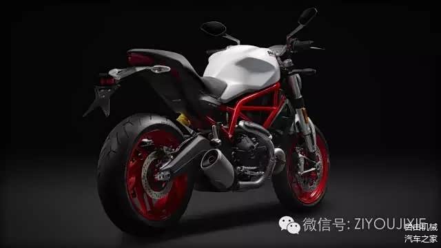 Monster 797是延续之前Monster 796研发的车型,根据现有的产品布局应该是降低排量填补Monster系列产品线。因为从2015年搭载水冷的全新Monster 821代替了原来的Monster 796成为入门产品后Monster系列就进入了“水冷时代”。