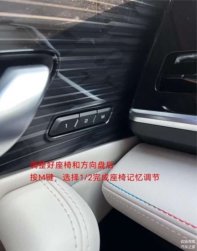 记忆座椅操控:长按M键后按1或者2,滴一声放掉,就可以实现当前位置记忆。上车的时候按1或者2就可以快速恢复记忆的座椅位置。