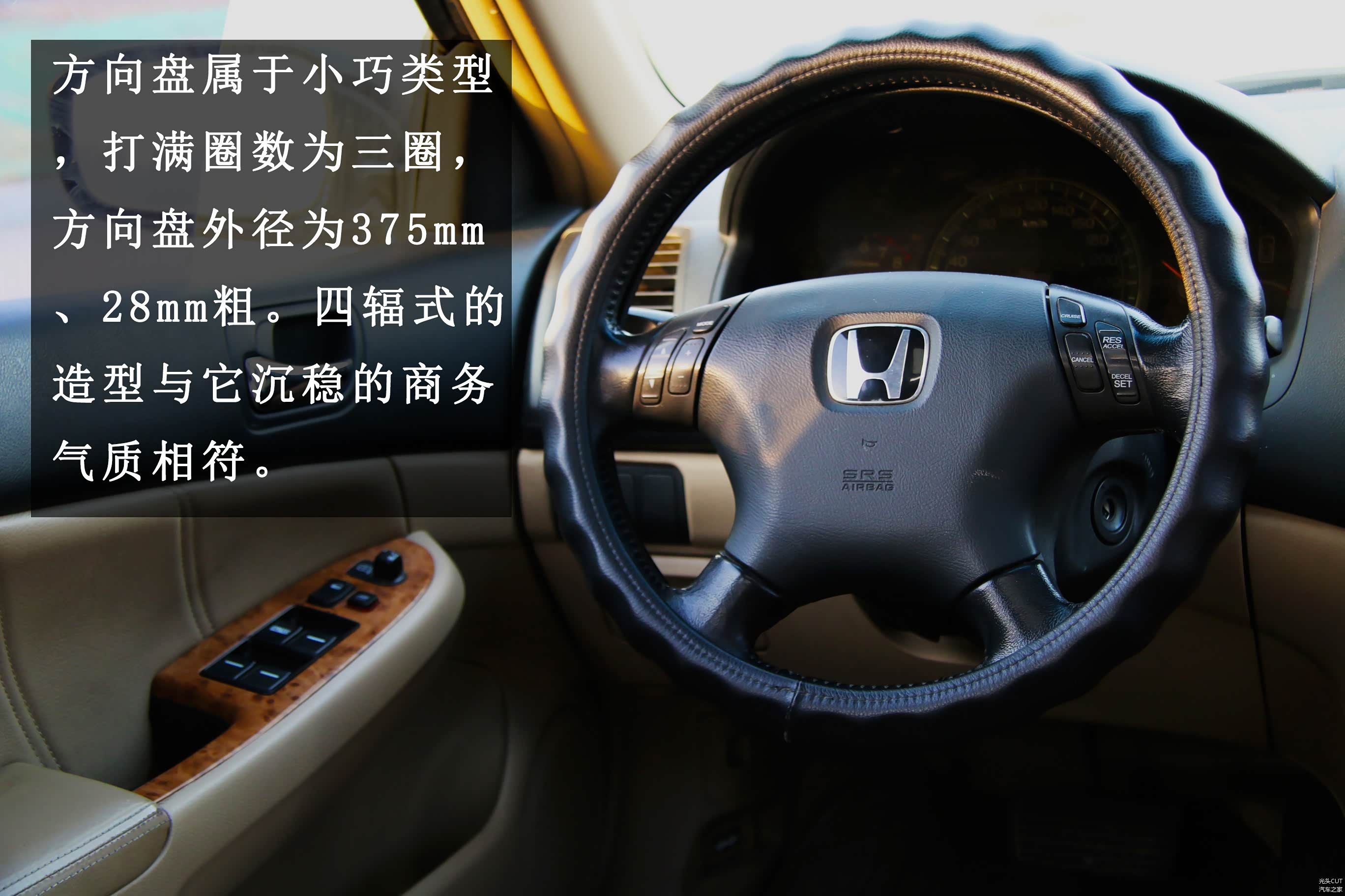 最后说到方向指向,指向精准是驾驶起来最大的感受,方向盘手感不错,得益于方向盘外径375mm 、28mm粗的小巧尺寸。指向精准也得益于3圈打满的方向盘,总之在动态感受中雅阁可以给驾驶者足够信心。给操控拖后腿的就是扁平率较高的轮胎了,205/65R15的轮胎为过滤地面细小颠簸提供了帮助,但是在极限条件下过厚的胎壁不能给车身提供必要的支撑,无法控制较好的车身姿态难以给驾驶者信心。
