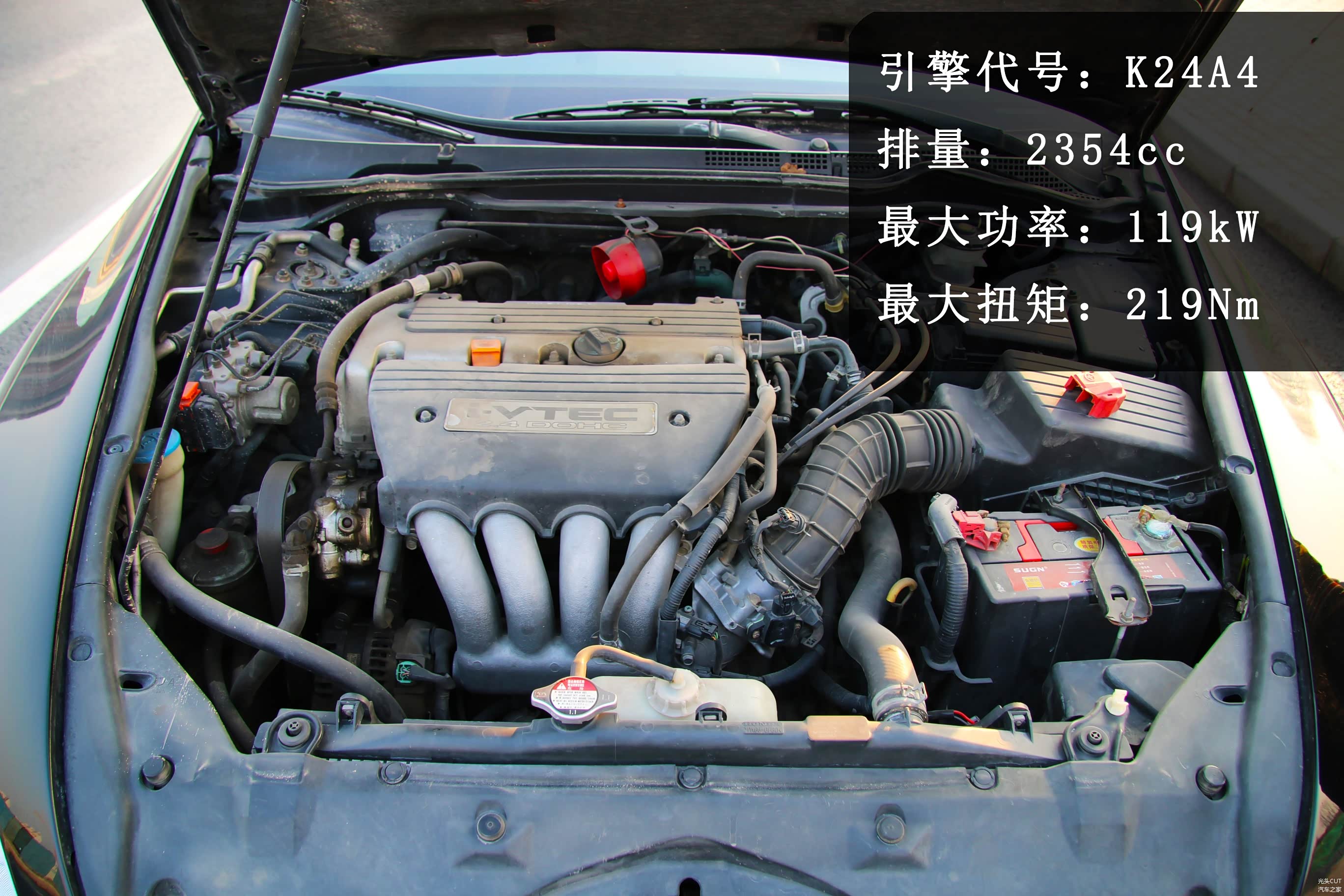 该车型采用了代号K24A4的2.4L的i-VTEC引擎,最大功率119Kw、最大扭矩219Nm由于i-VTEC发动机高转速的出力特性和5速自动变速箱的配合在实际驾驶中,雅阁的起步很有爆发力,动力表现让人感觉信心十足。车辆高速行驶稳定,这主要得益于其前双横臂式、后五连杆的悬架,机械结构上的优势让车身的稳定性和操控都变得不错,本田对雅阁底盘的调校还是下了功夫的。本田还为雅阁加装了VAS的车身控制系统,工作原理与ESP大致相同。刹车脚感线性,属于日系一踩就有的灵敏感。由于采用电子油门再急加速的情况下雅阁反应略显迟钝。