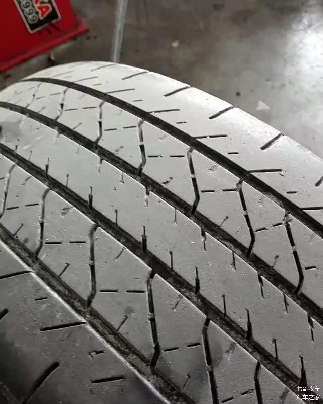 △9.2万公里坑纹还很深,但胎壁老化有裂纹必须更换