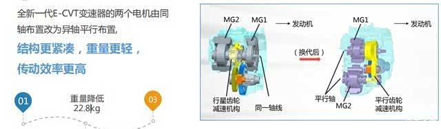 △全新凯美瑞双擎E-CVT重量更轻、尺寸更小、传动效率更高