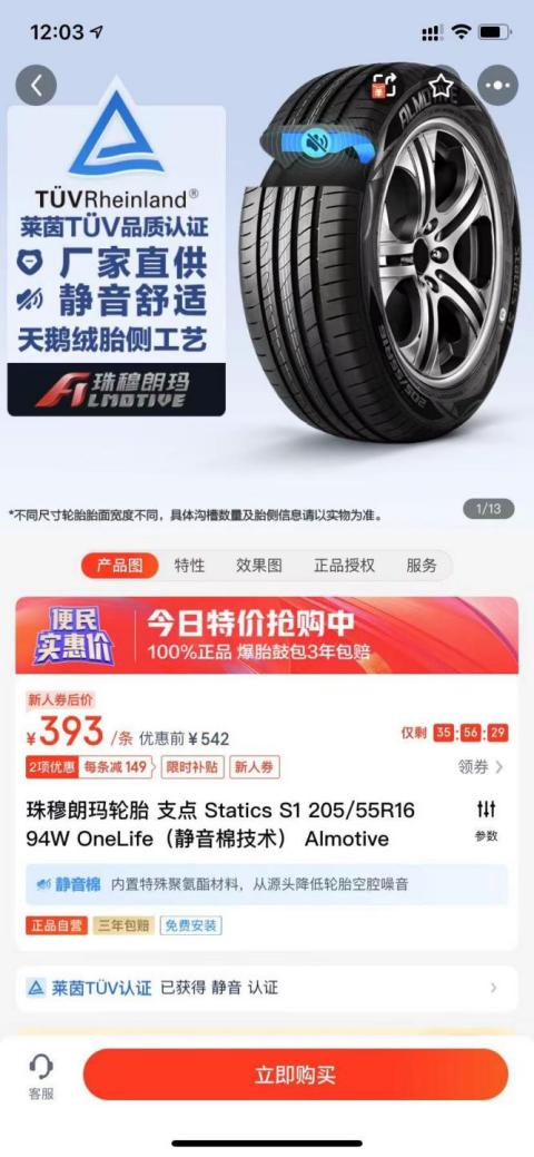 所以,当时我也做了一些其他的研究,发现想要实现静音、稳定还要不多花钱,国产的轮胎里面也是有好选择的,就是途虎养车上热卖的珠穆朗玛轮胎,用外国品牌一半都不到的价格,实现相近的性能。