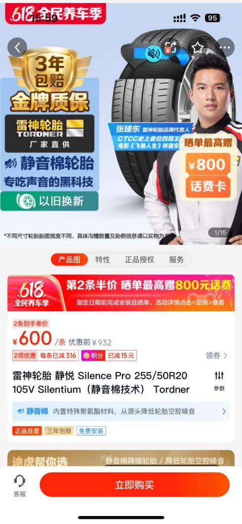 而同样具有出色静音性能的雷神轮胎静悦Pro,就算买到20寸这样大尺寸包含静音棉的雷神轮胎静悦Pro单条价格不过600元,在途虎养车平台购买多条还能获得更低的价格,这几乎是进口大牌不到三分之一的价格。