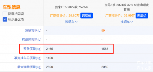 而且,在对低滚阻、高耐磨、强抓地、高静音进行取舍的时候,我们会发现,对新能源车来讲,低滚阻、高耐磨性是必须的,一个是延长电池的续航,一个是减少换胎的频率。至于抓地能力,更是一个难点——同级纯电车比同级燃油车重多少?蔚来ET5和宝马3系的对比可以说是令人震惊,前者重了577kg之多!