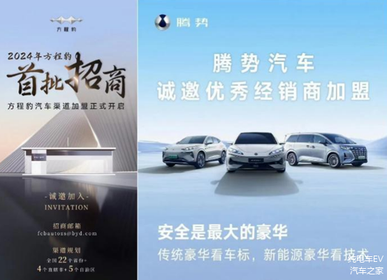 但是,在6月18日,腾势和方程豹官宣全面开放经销商招商加盟。这意味着,这两大品牌放弃了纯直营模式,转变为“直营+经销商伙伴”的渠道模式。