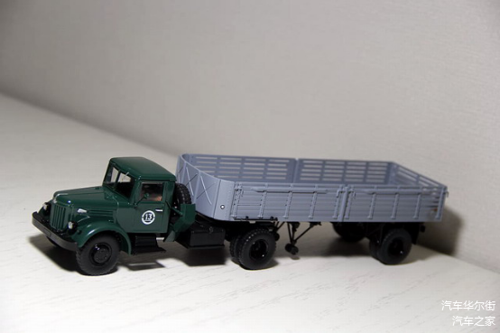 在车模市场上,我们也可以找到克拉斯256B的1:43模型,我用1:43的嘎斯51(南京跃进130)车型做了一个对比,大家可以清楚看到重型卡车与轻型卡车的大小区别以及载运量高低。