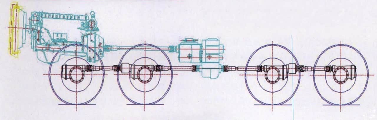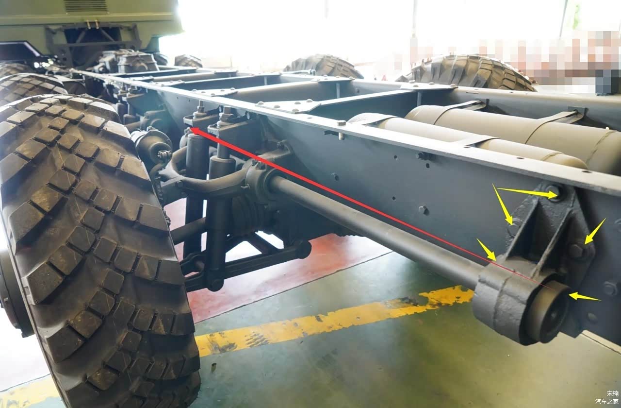 实际上,20Y改型车桥技术使用的还是整体桥。只不过,动力总成输出的动力,经过位于第2、3驱动桥中央的分动器,向前传递至第2、1驱动转向桥,向后传递至第3、4驱动桥,第2、3驱动桥使用贯通式差速器的模式,被522车所沿用。