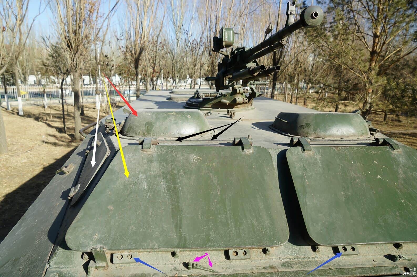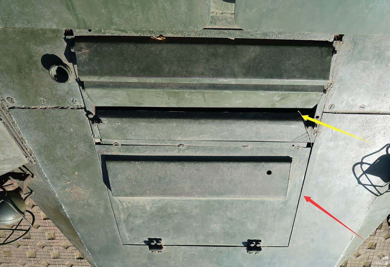 黄色箭头:护板开启后,车身装甲板焊接的橡胶缓冲块