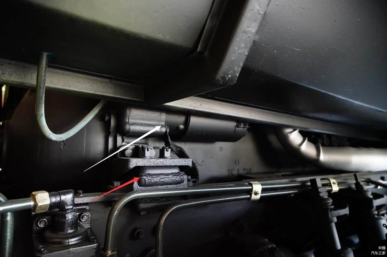 上图为青山522改型车换装了动力总成后,副驾驶员一侧的载员舱后部顶端的排气管特写。