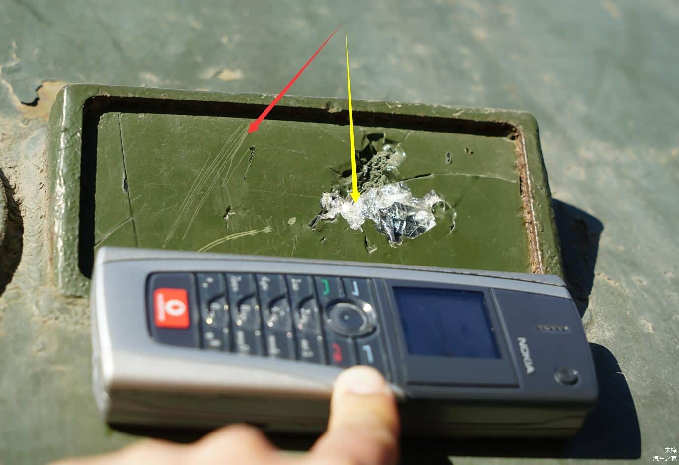 上图为522车载员舱侧装甲板上的观察孔防弹玻璃,与诺基亚9系列个人通讯终端比对特写。