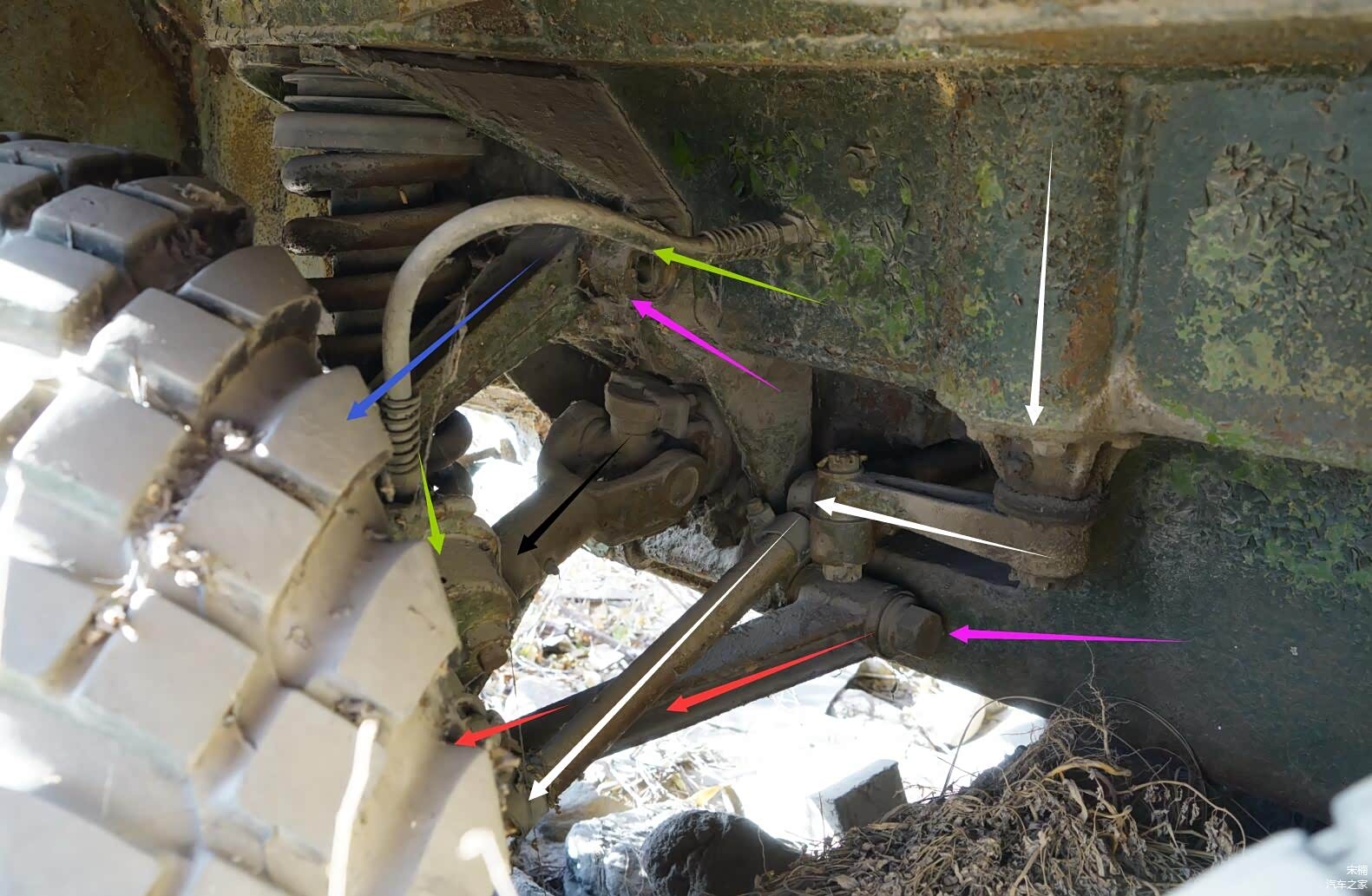 09式步战车族下A型摆臂(黑色箭头)、减震器(红色箭头)、减震器(黄色箭头)等技术特征,又是在92式步战车基础上改进而来。