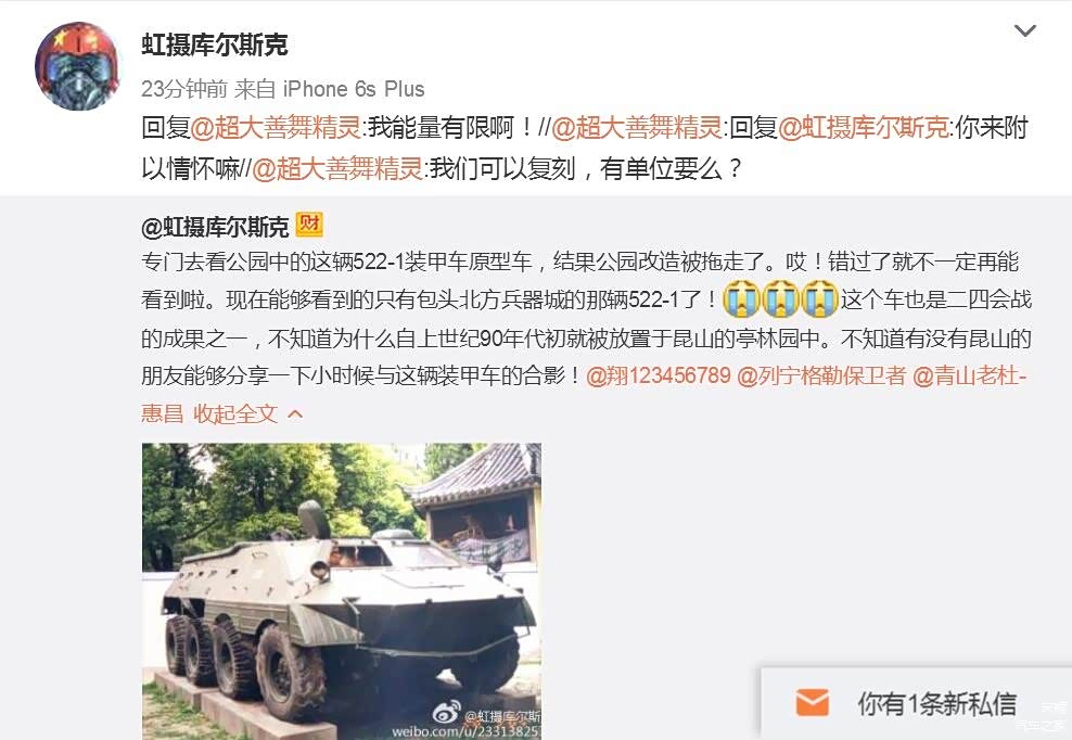 至今为止522车留下来的技术资料相当稀少,只有微博用户@@虹摄库尔斯克为坦克装甲车辆杂志撰写的介绍稿件最为详实。至于522车的长宽高、轴距以及装甲厚度、内饰状态等至关重要数据,已经无从考证了。