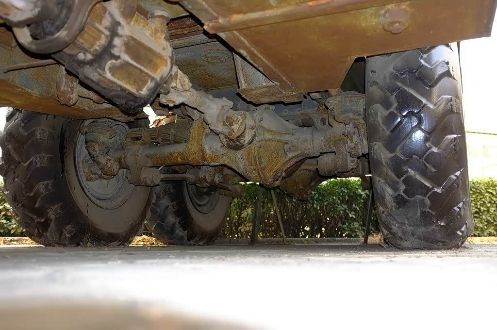 包头522车的悬架与驱动结构,与青山522改型车以及523轮履合一车完全相同。只不过在523轮履合一车型上转向拉杆组件有所进化。不得不说的是,522车的悬架与驱动结构,奠定了之后40年我军6轮、8轮驱动轮式载具的技术基础。