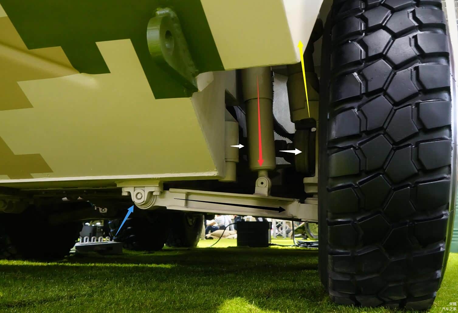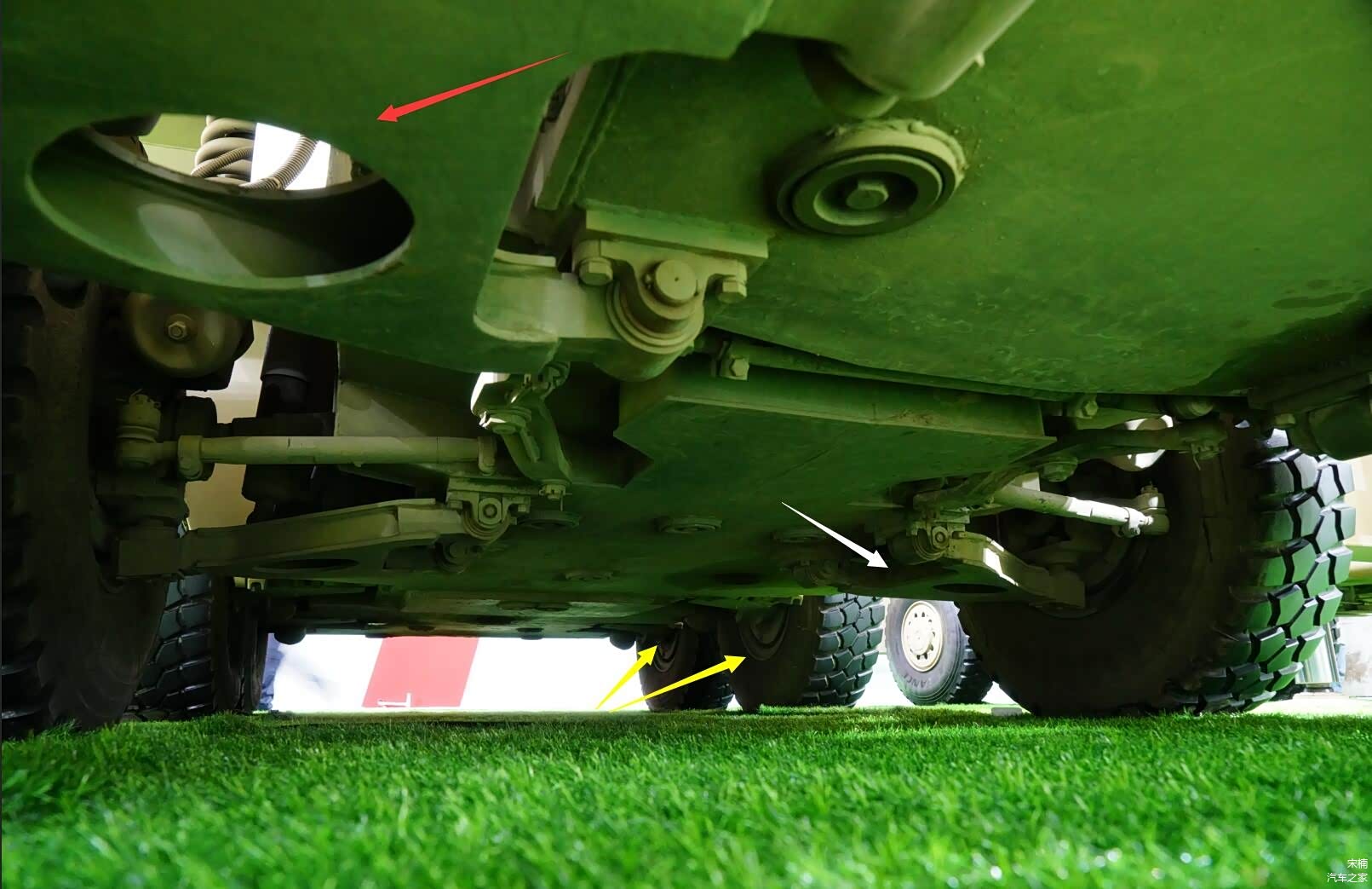 全封闭的车身,仍然将驱动桥、传动轴、分动器等行走机构完整的暴露在外。