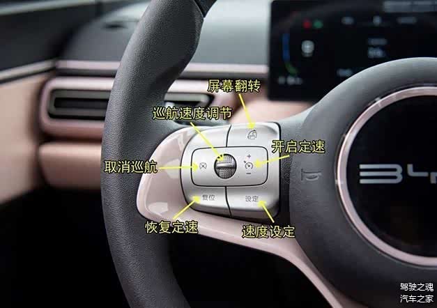 开启定速:定速巡航功能开启按键,定速巡航就是可以让车子保持一定的速度向前行驶,在高速上比较实用。但是要注意,开启此功能并不是马上就能用。需要按速度设定这个按键,这个按键能让车子按照当前速度进行前进。