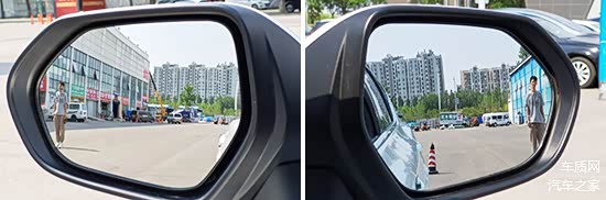 评测车的两侧外后视镜均未采用双曲率镜片,不过依然能够提供不错的视野。经实测,左侧外后视镜视野范围为25.6°,右侧外后视镜视野范围为14.6°。其中,左侧外后视镜测试成绩达到同级别中上游水平,而右侧外后视镜测试成绩处于同级别下游水平。