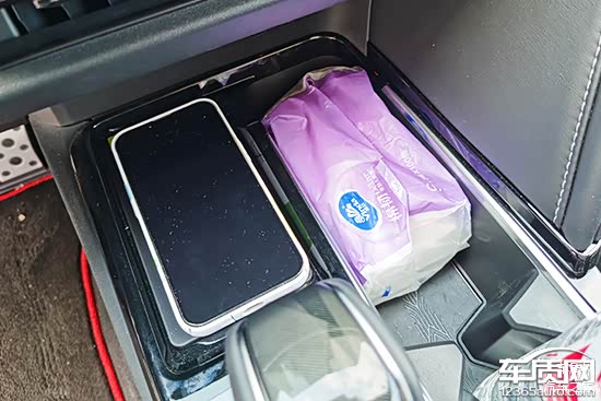 评测车在前排中控台下方还配备了1个手机无线充电板,充电功率为15W,但未提供散热通风口。需要注意的是,该手机无线充电板并不支持关闭,日常使用时应避免将金属物品放置在上面。