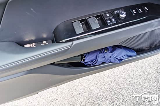 经过实测,除了墨镜和挎包外,其余固定物品均可以合理地放置在评测车前排各个储物空间内。前排杯架前方提供了小型储物格,用来放置抽纸没有问题。前排门板储物格尺寸不大,仅能容纳1把折叠雨伞。由于没有配备眼镜盒以及尺寸较大的储物格,因此墨镜和挎包没有合适的地方放置。