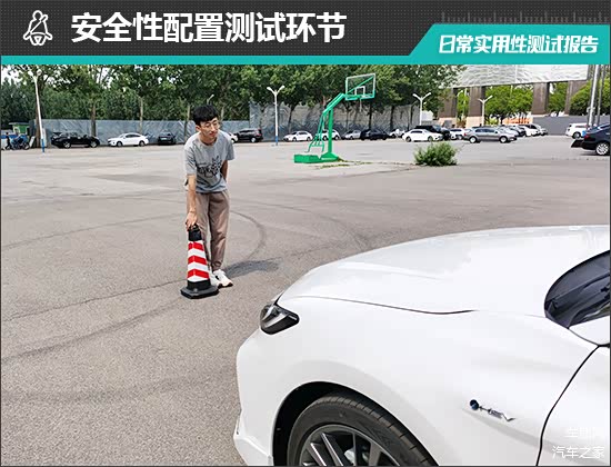 在测试前方视野环节,我们采用高70cm的桩桶作为参照物,随后调整车距,直至在主驾驶位可以看到桩桶上沿。经过测试,桩桶与车头最终测得的数据为1.9m,达到同级别中上游水平。