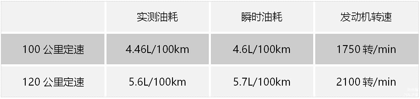 我们在此先进行简单的评论,之所以我们挑选100公里及120公里时速,乃根据国内最常见之高速公路限速标准,而两位乘客也是最普遍的承载状况。有趣的现象在于两个时速下的实测油耗,虽然120公里时速下的5.6L/100km属水准演出,但与100公里时速间的4.46L/100km差距依旧不小。原因在于汽车都有一个经济车速,过快、过慢都会浪费能源。一般汽车的经济时速在60-120公里之间,超过这个区间,油耗大大增加。而内燃机的燃油经济性的曲线是一个倒U字形的,有一个最佳燃油经济性的区间,超过和低于这个区间都会使汽车比较耗油。故我们若将时速再往120公里以上调整,油耗的增加幅度将急速增加。