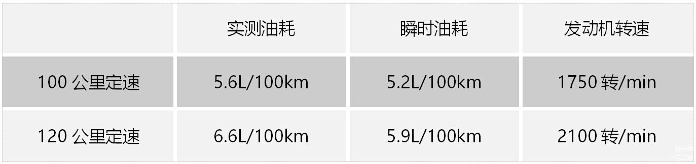 紧接着来到最后一个测试路段,与定速100公里之下一样,定速120公里下的转速也与增加重量之前维持在2100转,当然实际油耗同样增加不少,仪表板上的显示为5.9L/100km。抵达最后一个休息区,该段56公里的路程消耗了3.48L,实际油耗约为6.6L/100km。