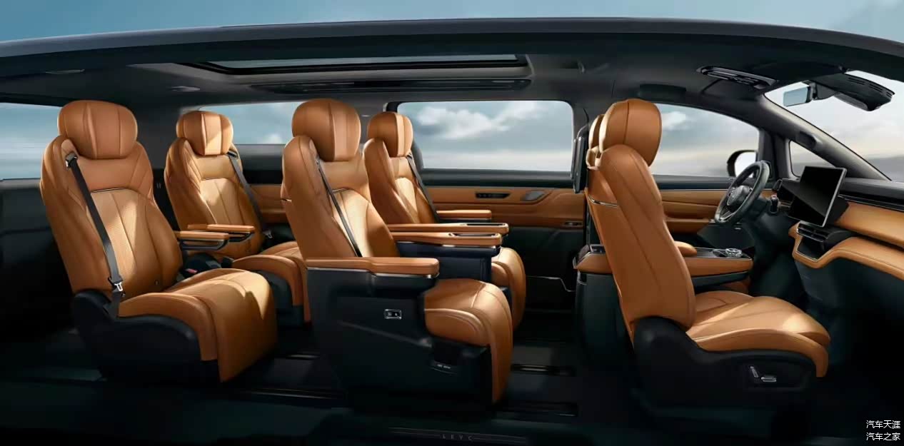 可选8座版本新车内饰的整体风格较为简洁,配备了液晶仪表盘和大尺寸的悬浮式中控屏,搭配三幅式的多功能方向盘,还采用了怀挡式换挡机构,并将中控台位置做了贯穿设计。
