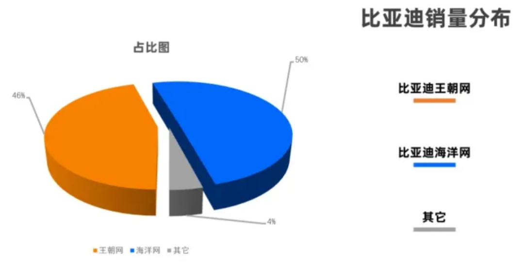 不过,当时e网车型由于偏向B端、热度不及王朝系列,使得e网经销商面临着不小的亏损风险。为了留住经销商,比亚迪不得不把秦、宋等一部分王朝系列车型暂时放到e网里同堂售卖,以此来缓解经销商压力。俗话说吃一堑长一智,后来比亚迪凭借一系列操作拯救了e网。一是宣布完全停售燃油车,以后卖的都是新能源产品;二是新推出了海洋系列品牌,通过“姊妹车型”的方式,让王朝和海洋处于平级,然后让海洋网逐渐成为升级版的e网。