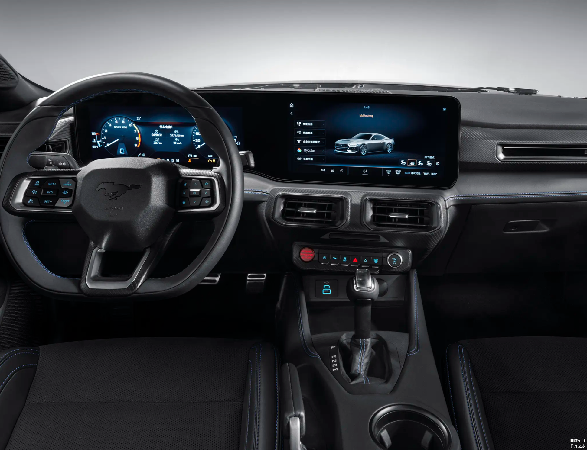 和上一代野马一样,全新一代野马使用的也是2.3T发动机,最大功率299马力峰值扭矩453牛米,比一般的2.0T发动机要强大一些,与之匹配的则是10AT变速器,性能和国内的很多300马力左右的单电机后驱版轿车类似。国内引进的野马配置比较高,没有引进手动挡版本,而且内饰的用料做工也都要更好一些,整体的配置也更高。