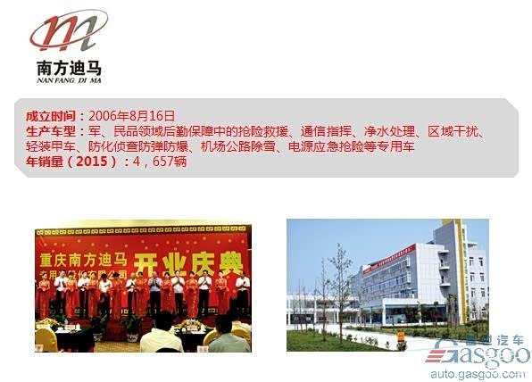 南方迪马是由长安集团、重庆大江工业有限责任公司、重庆市迪马实业股份有限公司三方共同投资组建的一家家专业生产军、民品领域后勤保障中的抢险救援、通信指挥、净水处理、区域干扰、轻装甲车等系列产品的企业。中银国际证券2016年发布的有关资料显示,2015年迪马股份专用车业务全年实现收入9.24亿元,整车销量4,657辆,同比增长20%,环卫车和特种车业务大幅提升。公司与兵器集团合资的南方迪马具备军品研制资格和产销经验,设计产能1000台,产能利用率已达105%。