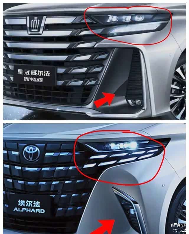 首先,最直观的区别就是它们的前脸设计。威尔法采用了皇冠车标,展现出一种典雅而高贵的气质。而埃尔法则使用的是丰田经典的牛头标,透露出一种力量与稳健的气息。在进气格栅的设计上,威尔法采用了分层式的设计,看起来更加有层次感;而埃尔法则采用了点块式的设计,显得更加精致。