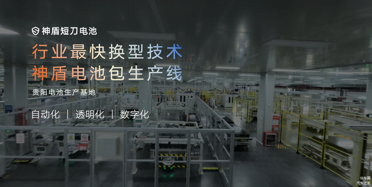 神盾短刀电芯是在盐城耀宁工厂生产,电池包则是由贵阳闪聚工厂生产,生产线采用吉利全新自研MES系统,自动化率达到90%,应用行业最快速换型技术已由4小时提升至6分钟内,产线质量控制要点全面智能化数据监控,达成行业第一。