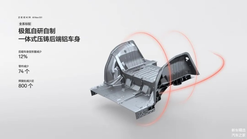 首先迎来聚焦的是极氪001的一体式压铸铝质车身,它以革命性的姿态重塑了汽车构造的边界。借助7200吨巨型压铸机的力量,极氪001的每一寸车体都传递着无懈可击的坚韧。相对于特斯拉Model Y,这款车的维修成本得到显著降低——这得益于其后碰车身变形量的精妙减少,零件的简化,以及焊接点的优化消减。