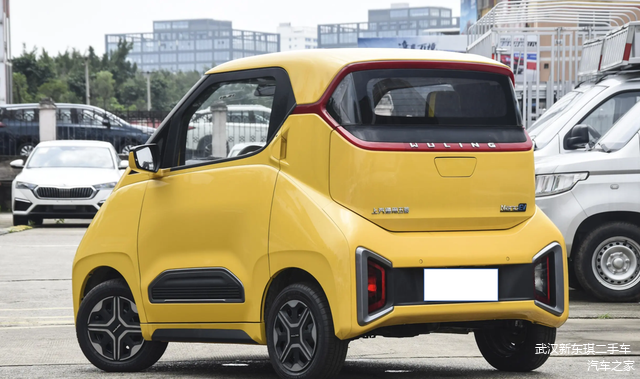 论颜值,五菱Nano EV的前脸挺讨人喜欢的。大灯斜向两侧拉,看着够聪明。车顶平直,下方的黑色包围两侧有C字形的处理,抢眼又可爱。这张前脸,一看就是年轻人的菜。