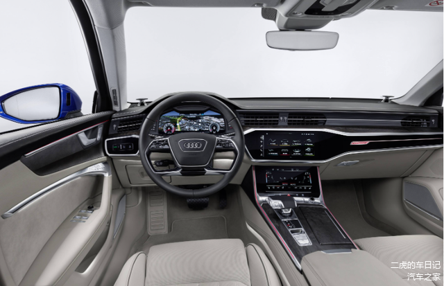 在内饰方面,奥迪A6L更为接近A8的造型风格了,亮点很多,比如中控台有三块屏幕,分别是全液晶仪表盘,中控显示屏,以及操控屏,充满了浓郁的高科技感。