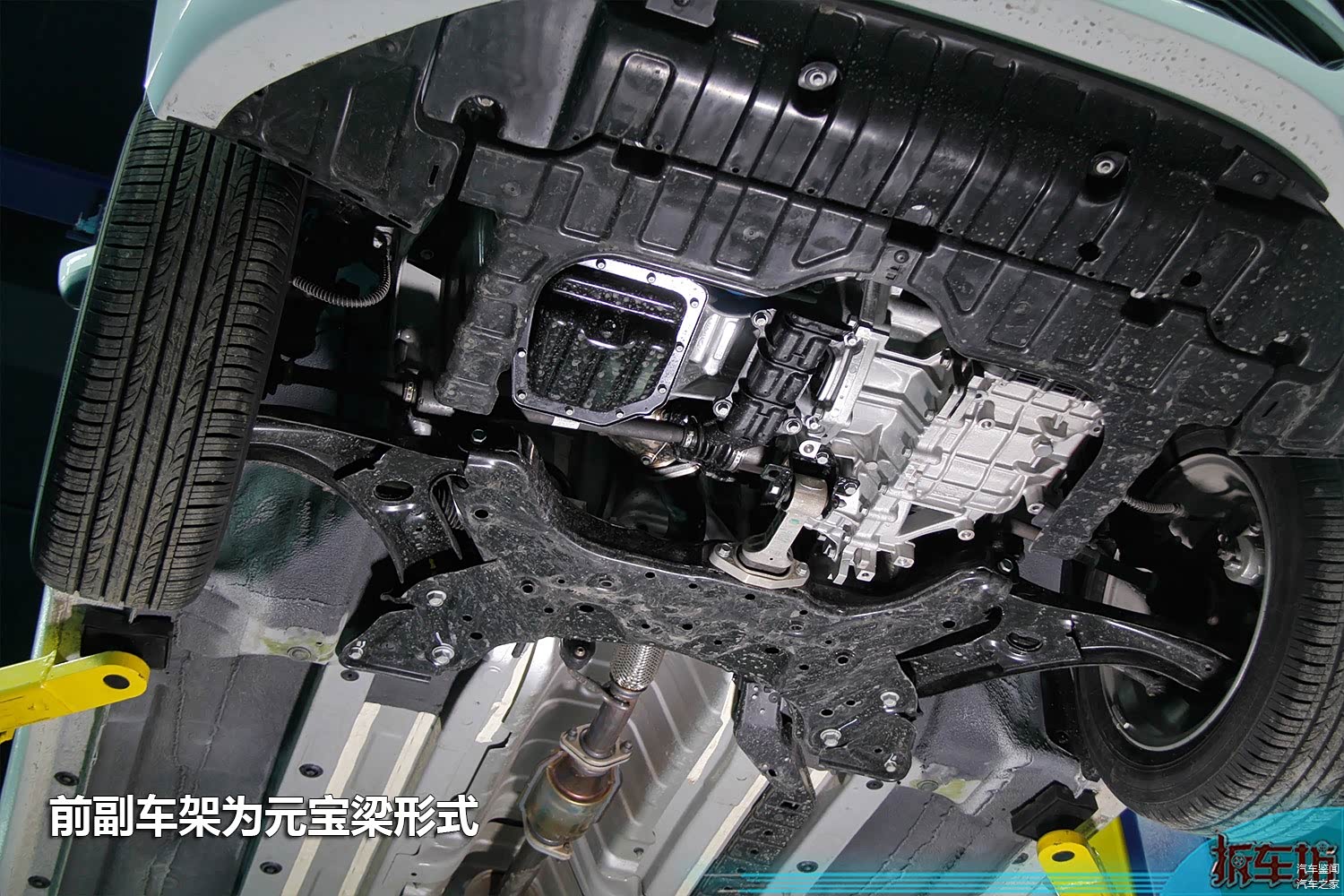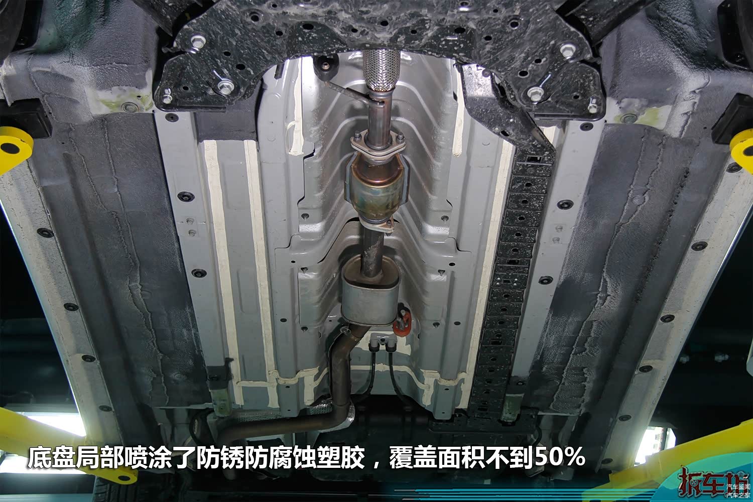 全新朗动底盘同样喷涂了防腐蚀塑胶,但覆盖面积不及底盘面积一半,我们仍能看到大面积裸露的金属板。经常行驶在阴暗潮湿地区的车友购买朗动后可以考虑后期封塑,以加强对底盘的保护。