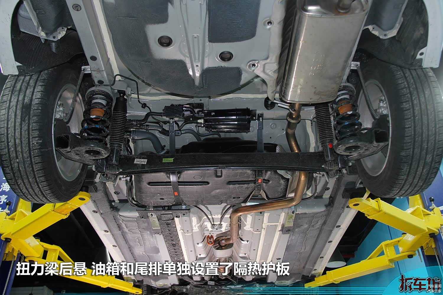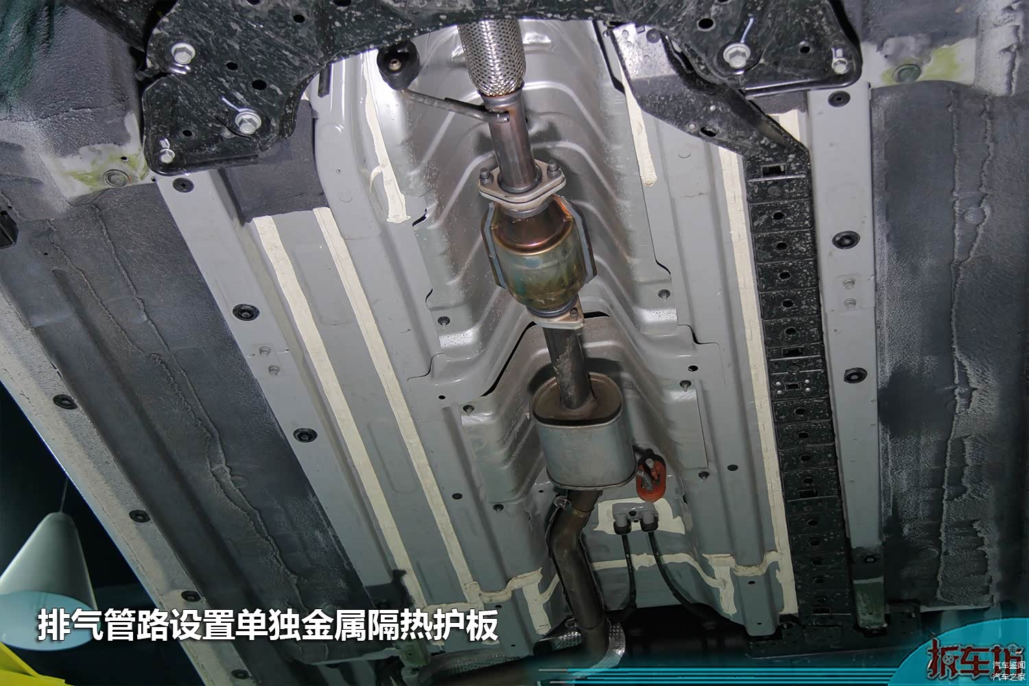 全新朗动尾排和车身之间设置了单独的隔热板,并且油箱和排气管路之间也设置了隔热板,保证了油箱的工作稳定性。