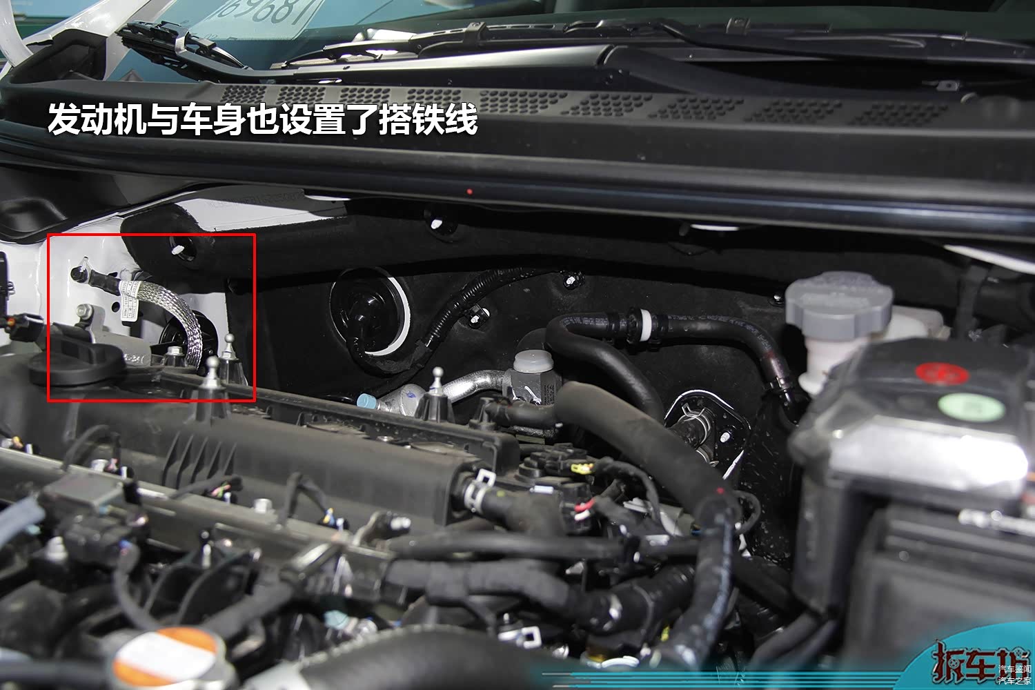 为了保证良好的搭铁,发动机和车身之间也设置了金属编织搭铁线。
