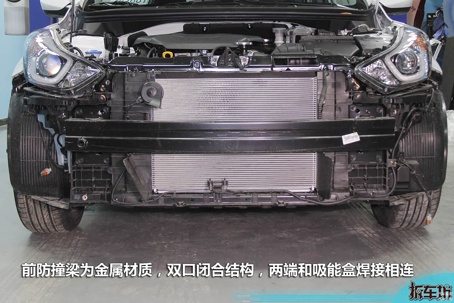 朗动前吸能盒为金属材质卷制而成,筒身为闭合结构,左右两侧设置了溃缩引导槽,毕竟现代汽车也是国际汽车品牌,在车身结构的成熟度方面,表现不错。