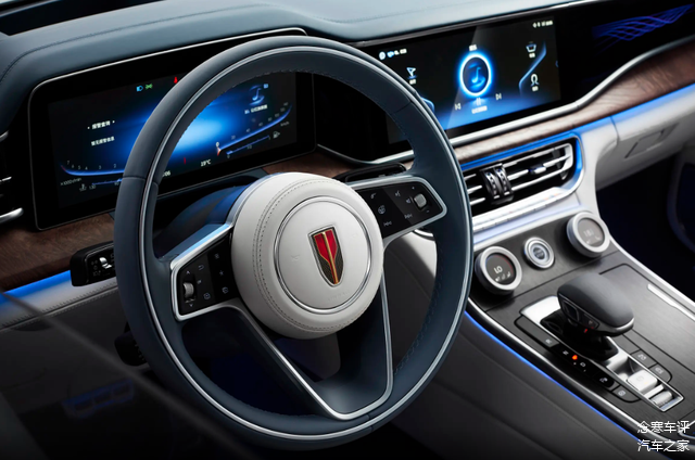 其次就是红旗H9的内饰设计非常抢眼,完全可以用“奢华”二字来形容,大面积的真皮包裹、实木装饰以及镀铬饰条的运用,营造出一种宫殿般的豪华氛围。