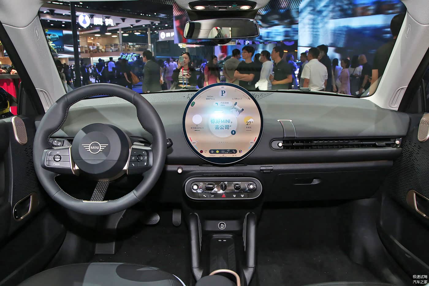 全新MINI COOPER纯电版的内饰同样也保留的MINI车系独特的风格,其圆形的中控屏颇为吸睛,包含了语音控制、各种驾驶模式调节等各项功能。即便如此,它还是保留了大量实体按键,这在2024年的纯电动车里面可不多见。