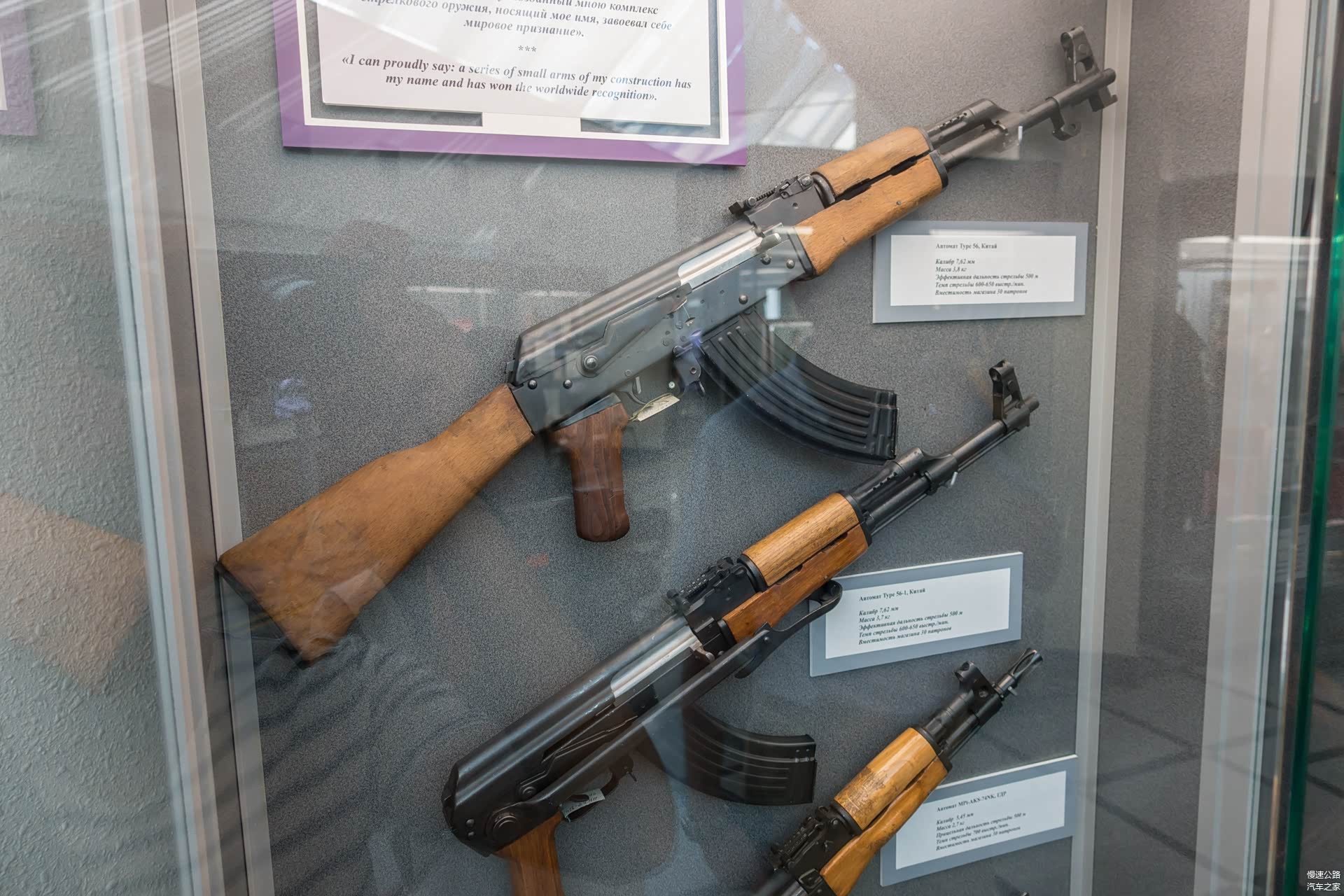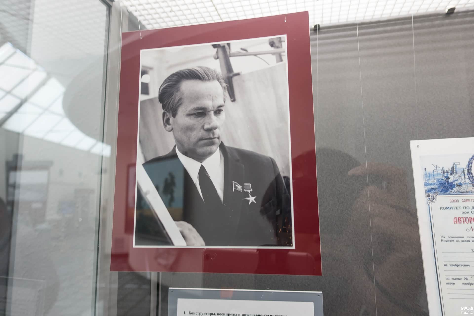 参观纪念馆是完全免费的,但如果你想要拍照,就必须支付100卢布一人,相当于10元人民币。从二楼开始欣赏展物,依次展示了卡拉什尼科夫的出生、发迹、AK诞生的过程以及所有他获得的荣誉,简单说,讲述了“一位农村出生热爱做手工的少年在参加卫国战争不幸受伤后开始奋发图强想研究更好的武器来保卫祖国,终于黄天不负有心人助其成功制造出全世界最伟大的枪支,这位少年也终于成为一代英雄”的励志故事。不过让人唏嘘的是,俄罗斯枪王因主动放弃AK47的专利权,落得一生清贫。