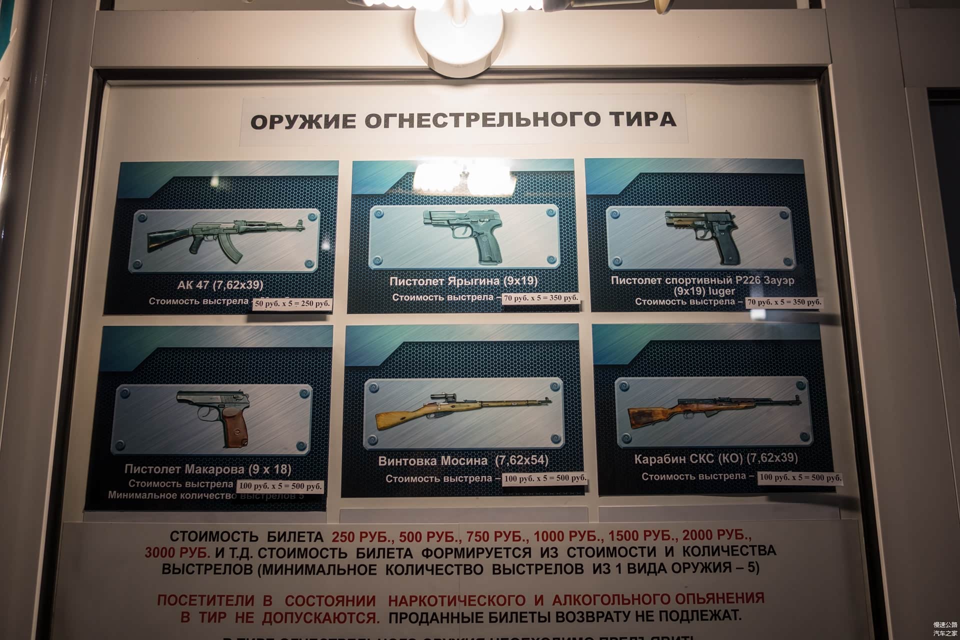 绕一圈后我们又重新回到纪念馆入口,直接购买实枪射击体验。数十种枪支可供选择,其中AK47是最便宜的:5元人民币一发子弹,每人来5发!另外还选了P226手枪:7元人民币一发,也各来5发!