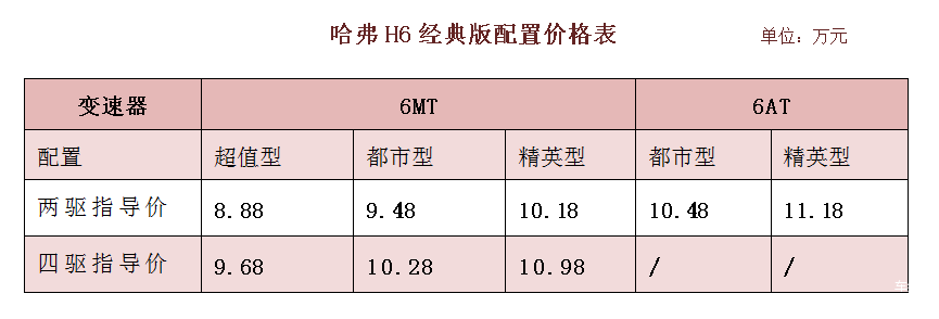 3月10号,哈弗H6在用户的呼声中推出了经典版车型,售价8.88万—11.18万,包含两驱、四驱,6MT、6AT共计8款车型,从8万级的6MT车型,到9万级的四驱车型,再到10万级的6AT车型,哈弗H6经典版堪称紧凑级SUV性价比之王。作为2017年哈弗SUV第一款重磅车型,哈弗H6经典版以其超值的产品,为哈弗实现“全球最大SUV品牌”奠定坚实的基础。