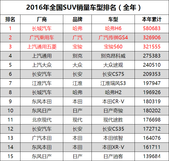 一百多年的汽车历史,出现过很多国民神车,远到国外的高尔夫、卡罗拉,近到我们国内的“老三样”富康捷达桑塔纳,这些神车有一个共同的特点:国民认可度高,销量大。以高尔夫为例,40年来,从德国到欧洲再到世界,3000万台高尔夫已经走进了3000万个家庭,而在中国,国民神车代代传,如今火种传到了中国品牌的手中,2016年哈弗H6以580,683台摘得冠军头衔,还以55%的同比增长率独领风骚,这个销量即便放在全世界SUV销量排行榜上也是排名第四的。