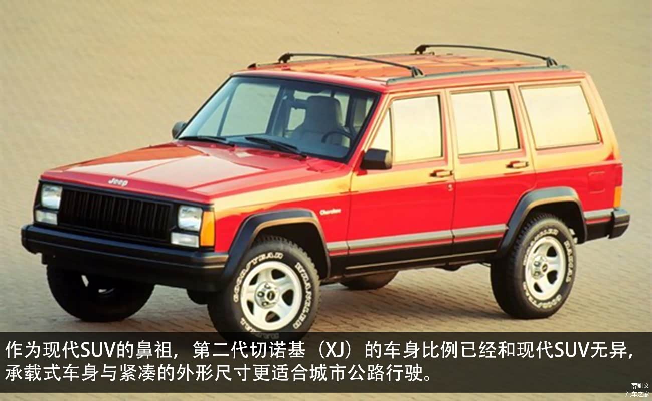 第一代切诺基(SJ)将SUV这个名词带到了世界上,但在业内,大家一致认为1984年推出的切诺基第二代车型(XJ)才是现代SUV车型的鼻祖。至于说原因嘛,因为在那个年代的Station Wagon车型中,普遍采用皮卡底盘加套上封闭式车厢设计,而切诺基(XJ)开创性地第一次将承载式车身引入到SUV车型设计中,这样在维持车辆出色通过性的同时还拥有了可以媲美轿车一般的公路驾驶体验。此外在车身尺寸方面切诺基XJ也尽显紧凑,比那些皮卡演变来的全尺寸“大厢车”要更显精致。