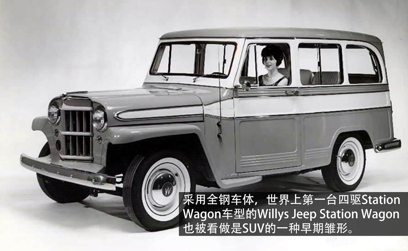 虽然威利斯一款车型就让Jeep品牌名垂千史,但是却并没有给当时的Jeep品牌带来多少利润,公司想要生存发展则必然要在在民用车市场上有所作为。1946年,Jeep推出了其首款民用车型-Willys Jeep Station Wagon车型,它和当时的许多Station Wagon(旅行车)一样有着贯通到尾部的宽大车厢,但是独特之处在于其采用当时并不多见的全钢车身。