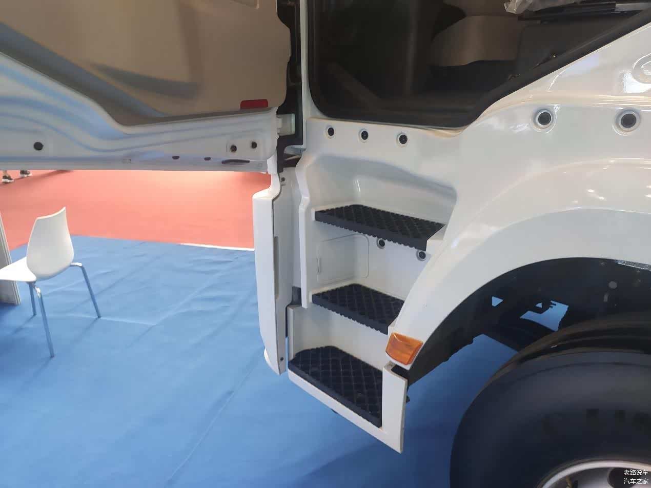 拉开车门后,三级登车踏板映入眼帘。踏板的进深和宽度都较为可观,与锯齿状的防滑纹路搭配,便于驾驶员安全登车。