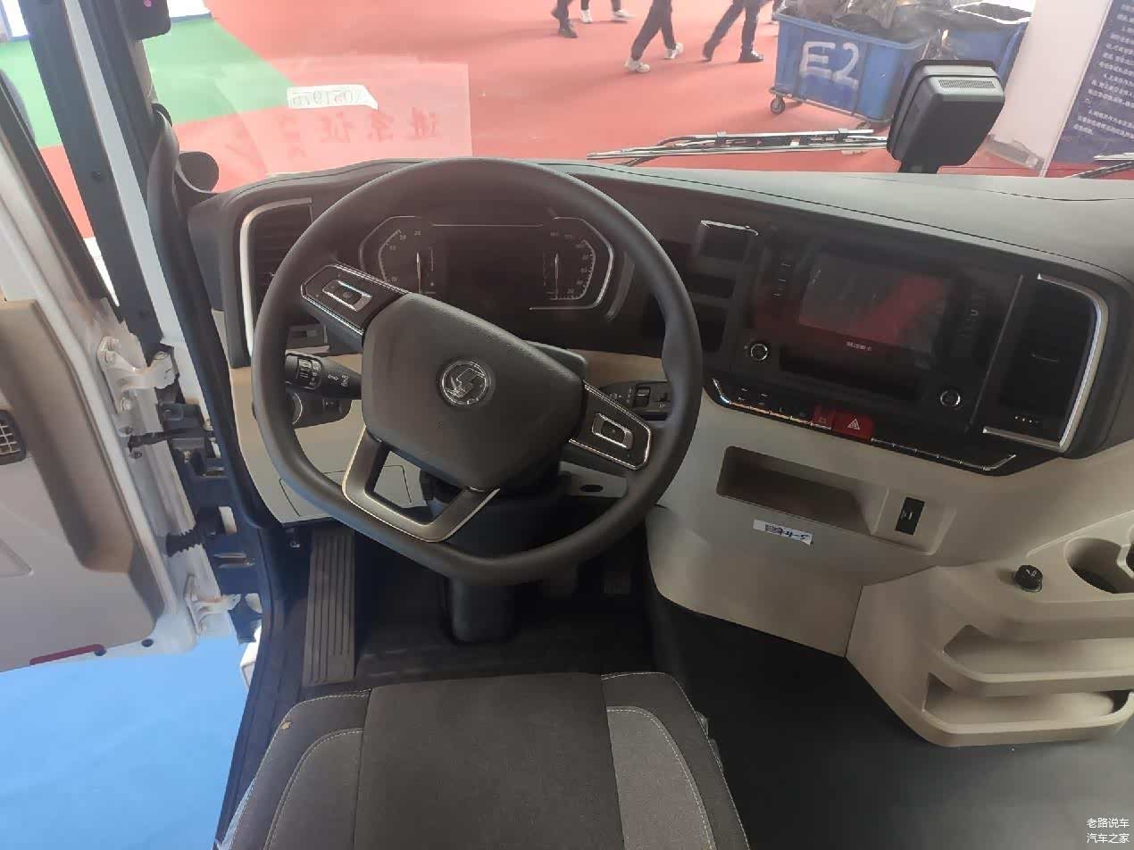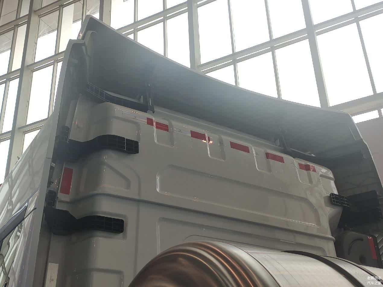 驾驶室后部带有可调节的导流罩,与挂车匹配可以降低风阻,优化气耗。