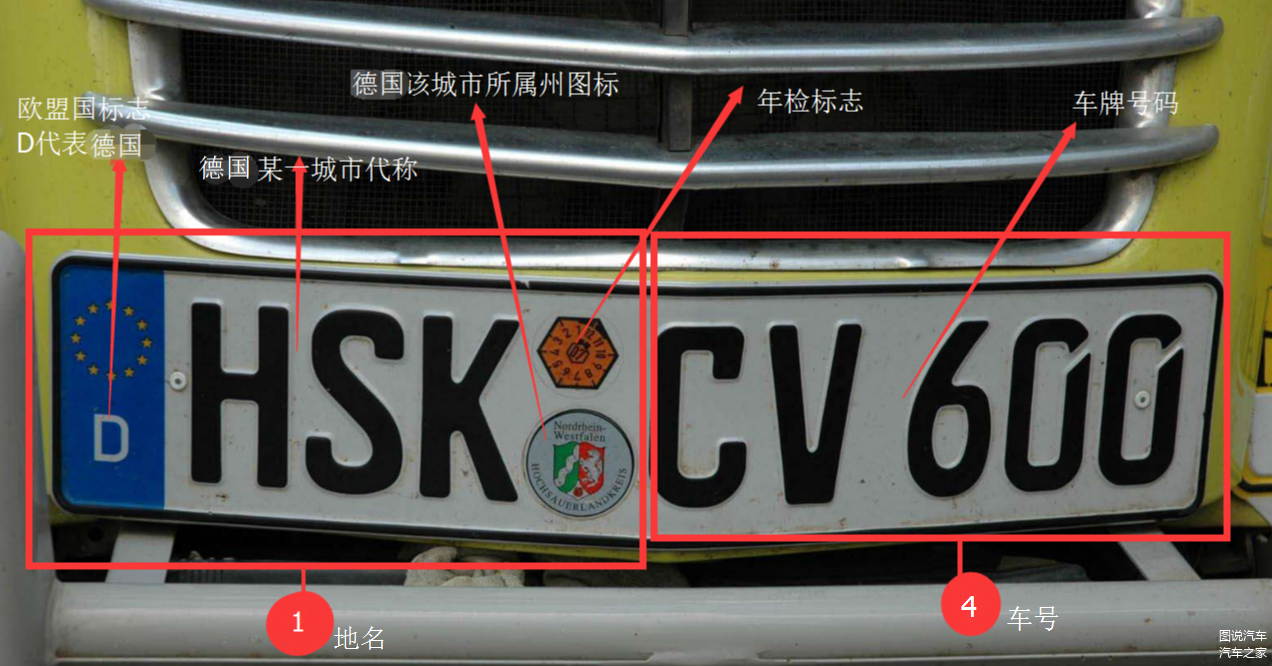 哇哦!猛一看,欧盟车牌是不是忒复杂了!别捉急,其实欧盟车牌更简单,基本上是14组合(1地名+2车种+3用途+4车号),由两部分组成,前半部分为1地名(欧盟国代号+城市代号+州代号),后半部分为4车牌号码。